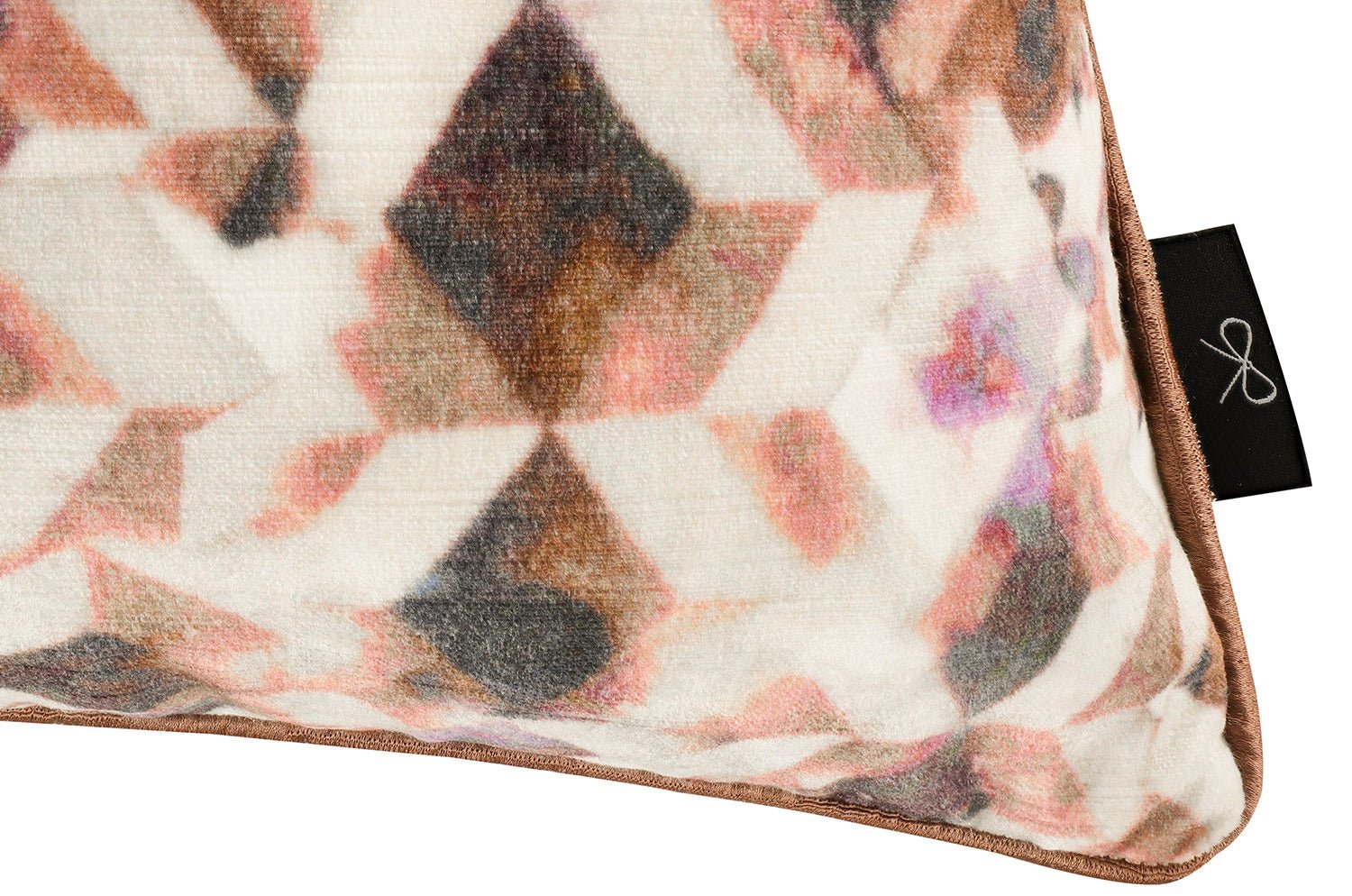 目を惹く抽象柄をプリントしたベルベットが、独自のカラーコンビネーションで魅せる、心を奪うコンテンポラリーなクッションです。