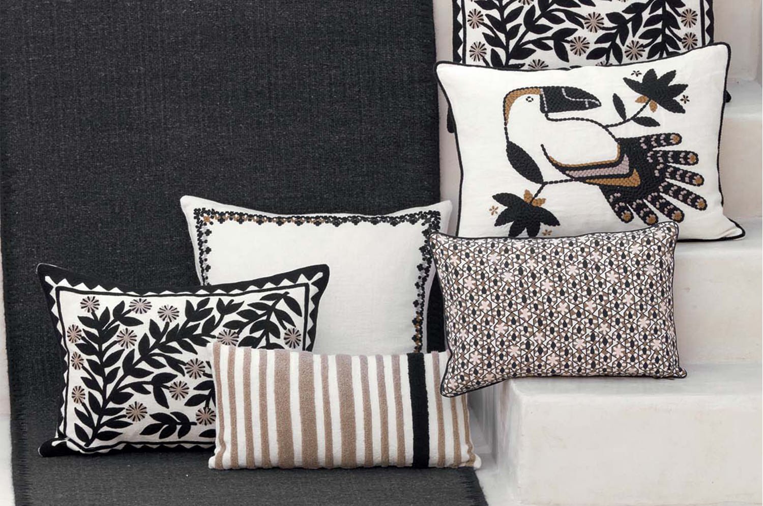 【海外取寄品】ELITIS(エリティス) Monterrey クッション(Réglisse) 50x25cm 中材付