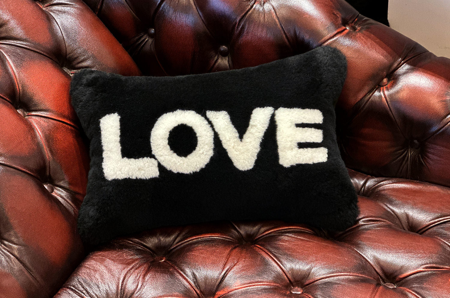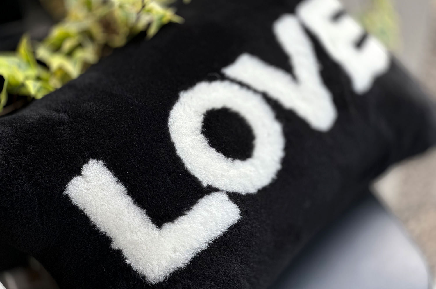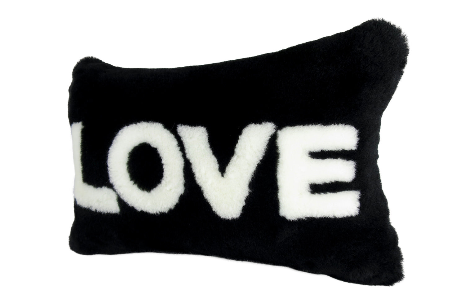 The LOVE ラブ ムートン クッション (ブラック) 45×30cm 中材付