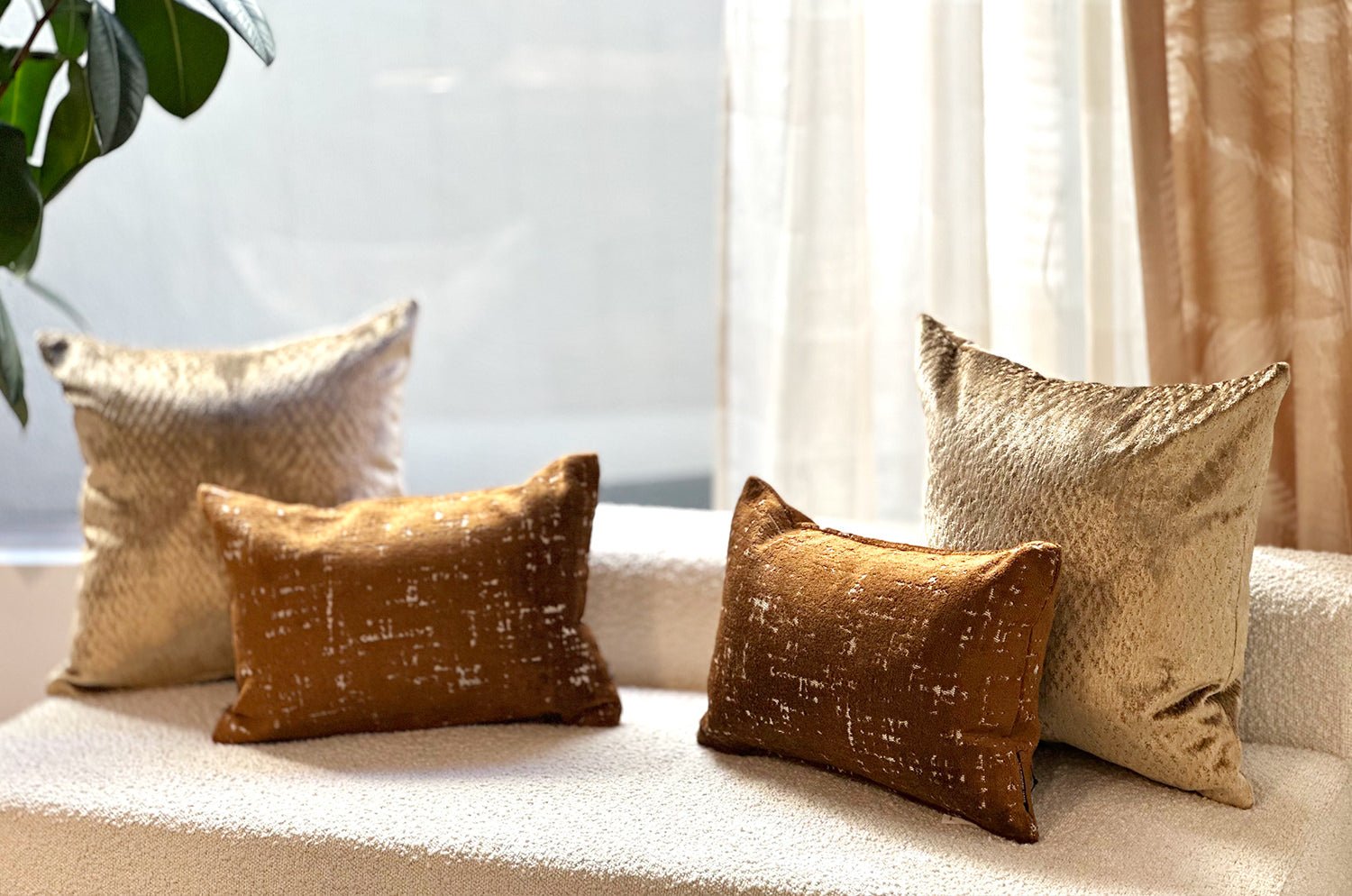 フランス製生地 SPHINXデザインベルベット横長クッション (ブロンズ)