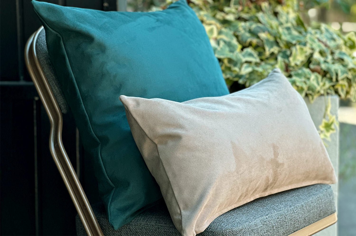本革のように滑らかな“シルキータッチ”と上品な光沢が魅力の、高級スエード調クッションカバー。