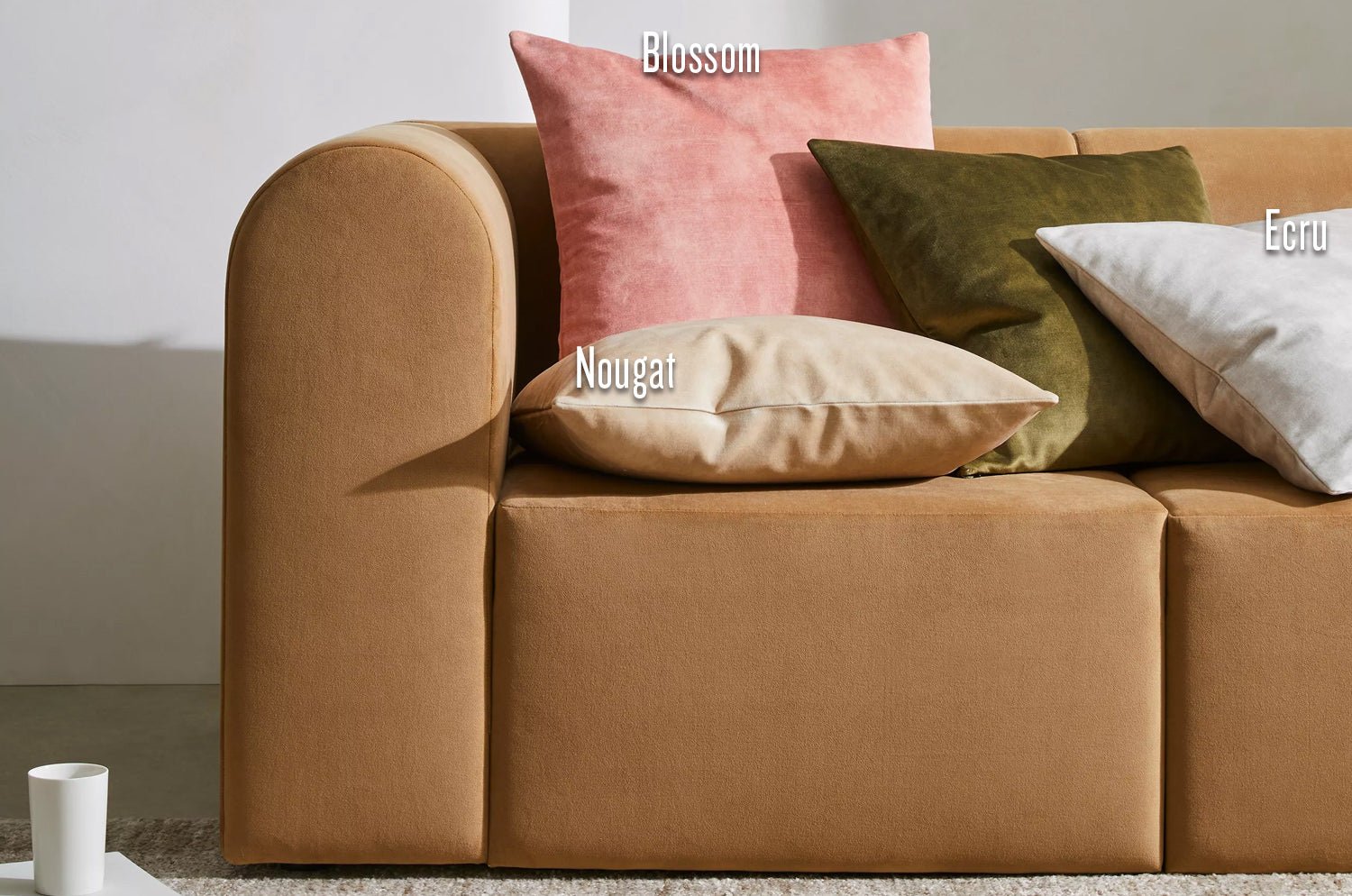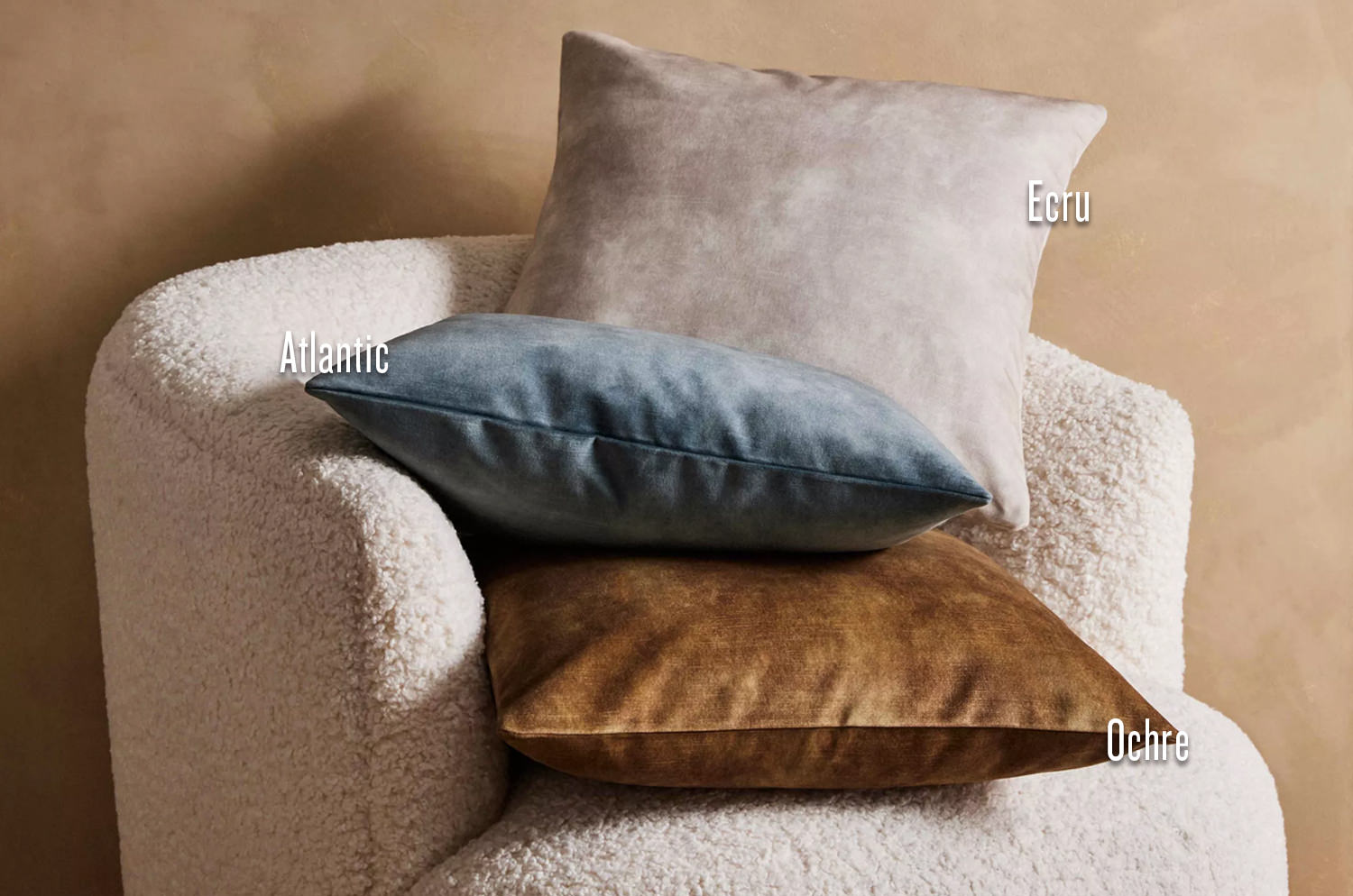 エイジングされたような上質で滑らかなプリントベルベットがトレンド感を演出できるクッションカバー (Ecru 50cm角)
