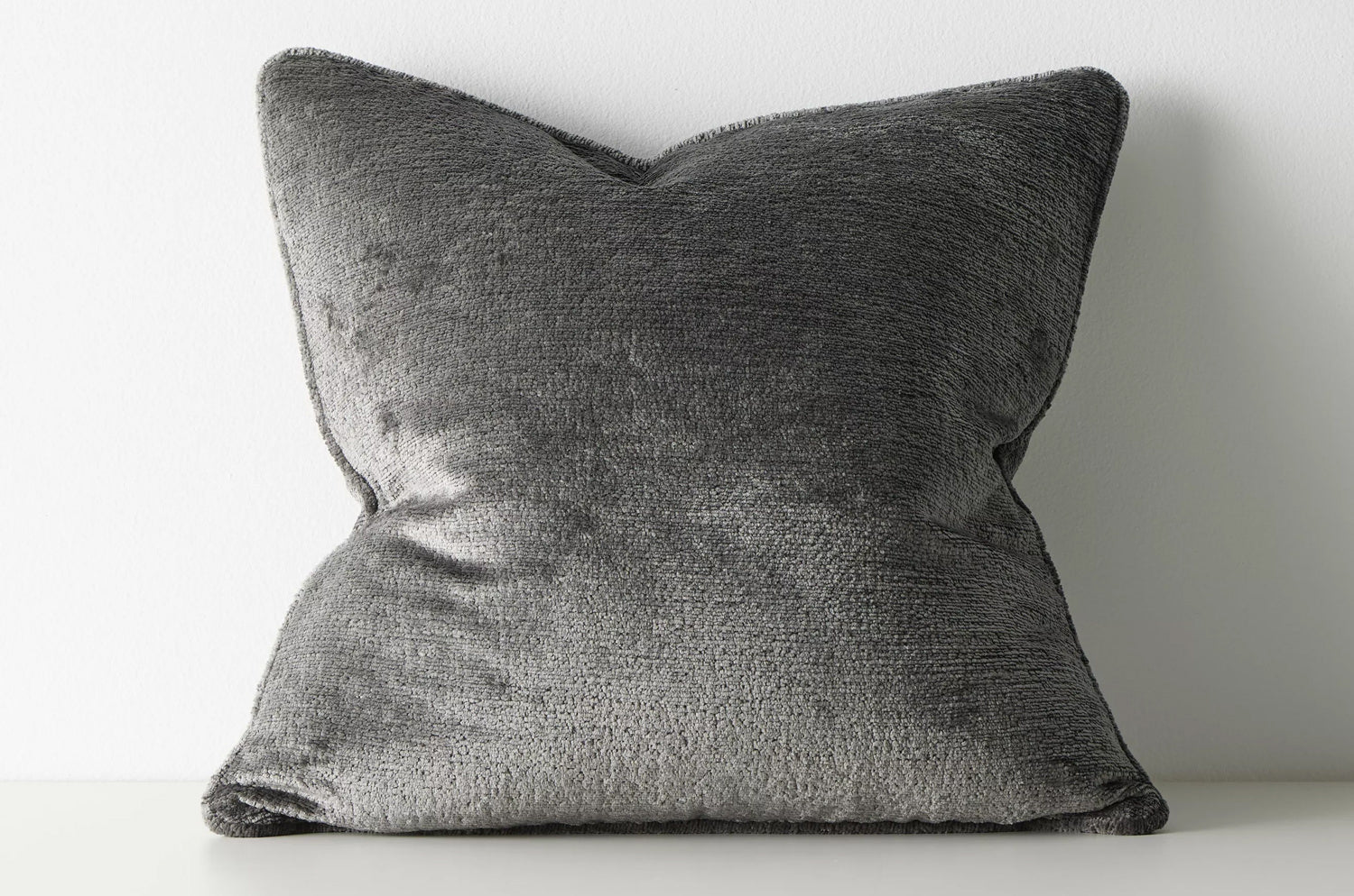The Noble ソフトグロウベルベット パイピング付クッションカバー(Coal) 50×50cm