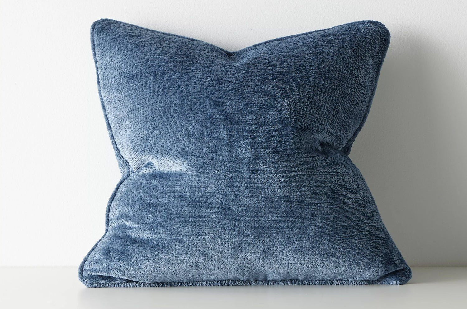 The Noble ソフトグロウベルベット パイピング付クッションカバー(Marine) 50×50cm