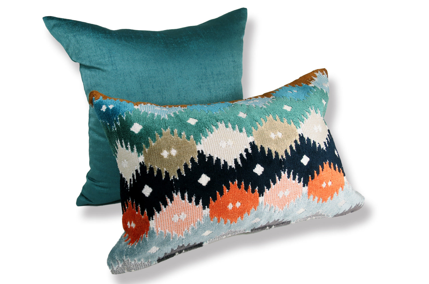 The Bombay ボンベイ ジャガード ベルベット クッション (Ocean) 45×30cm 中材付
