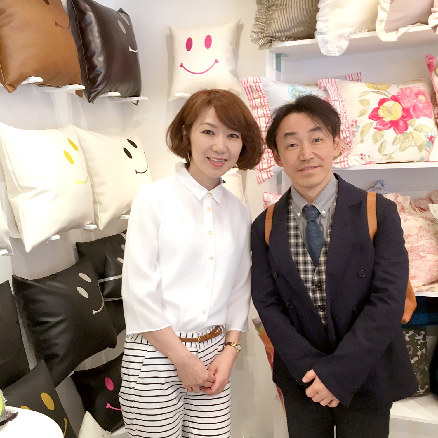 当店取扱いのニコちゃんスマイル刺繍クッションが紹介されました。
